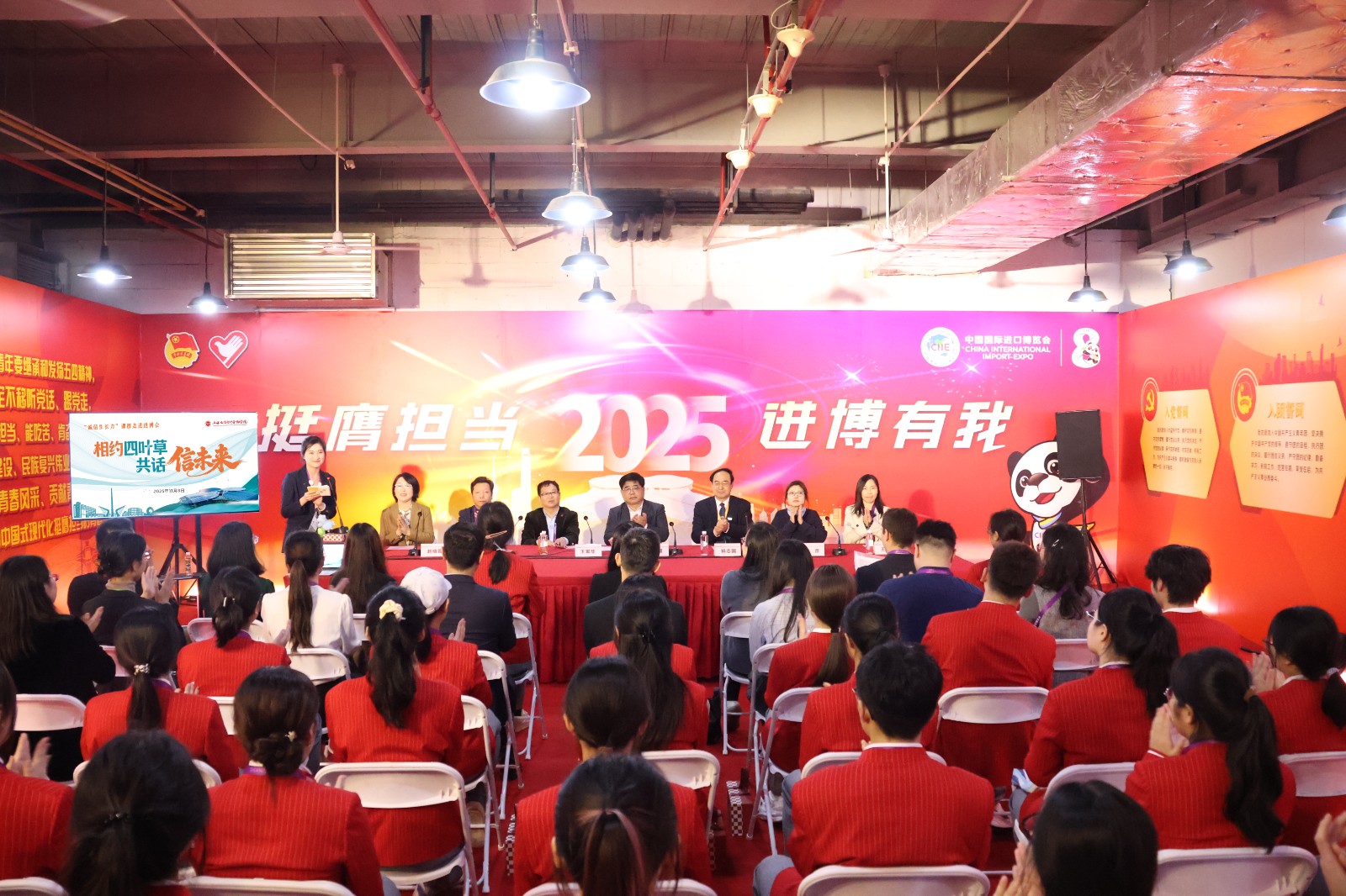 11月8日下午,国家会展中心志愿者之家“信仰大厅”内暖意涌动,情谊融融。校党委书记解超,校党委副书记、副院长王军华,校党委常委、党委宣传部、党委教师工作部部长王妍一行赴第八届中国国际进口博览会现场,亲切看望并慰问我校82名青年志愿者“小叶子”,为他们带去学校的殷切关怀与诚挚鼓励。