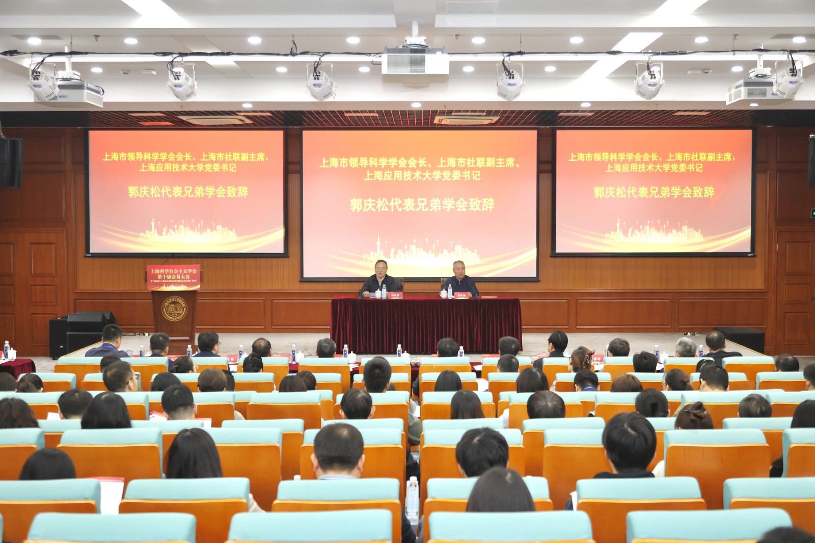 中国科学社会主义学会向大会发来贺信。上海市领导科学学会会长、上海市社联副主席、上海应用技术大学党委书记郭庆松代表兄弟学会致贺词。