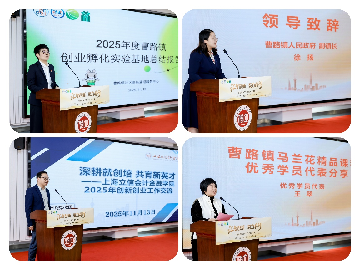 曹路镇社区事务受理服务中心发布了2025年度创业、就业与培训融合发展成果及典型案例。我校创新创业学院以“深耕就创培 共育新英才”为主题,分享了在实践教学、课程建设、孵化平台及协同育人方面的举措与成效。“马兰花计划”学员及企业代表分别作了交流发言。