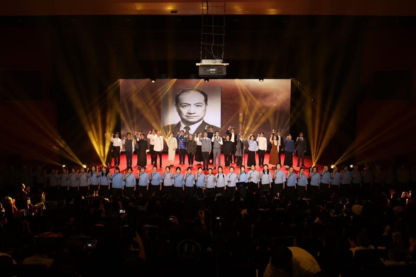 在纪念中国人民抗日战争暨世界反法西斯战争胜利80周年之际,为弘扬教育家精神,深入推进大中小学诚信教育一体化建设,我校隆重上演原创大师剧《潘序伦》,这是继2013年该剧首演后的精益求精之作。该剧作为“2025年文教结合项目——‘大师’系列校园剧编创巡演计划”的重要实践,由中共上海市教卫工作党委、上海市教育委员会指导,校党委宣传部、团委联合创排。