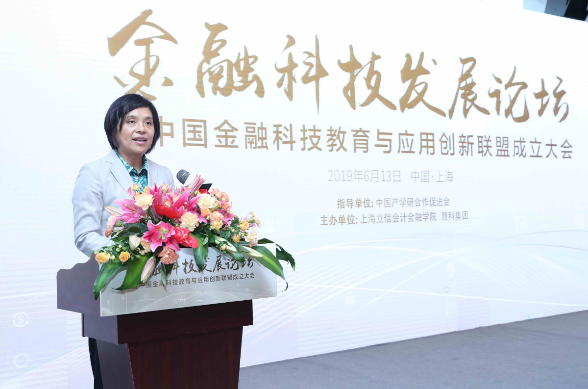 6月13日下午,由中国产学研合作促进会指导,我校和慧科集团主办的“金融科技发展论坛暨中国金融科技教育与应用创新联盟成立大会”在中国金融信息中心举行。中国产学研合作促进会执行副会长、秘书长王建华,国家开发银行原副行长李吉平,中国产学研合作促进会副秘书长丁玉贤,上海市教育委员会副主任毛丽娟,我校党委副书记、校长唐海燕,副校长顾晓敏,新泽西理工学院管理学院院长Reggie J. Caudill等中外嘉宾近百人出席。大会由顾晓敏主持。