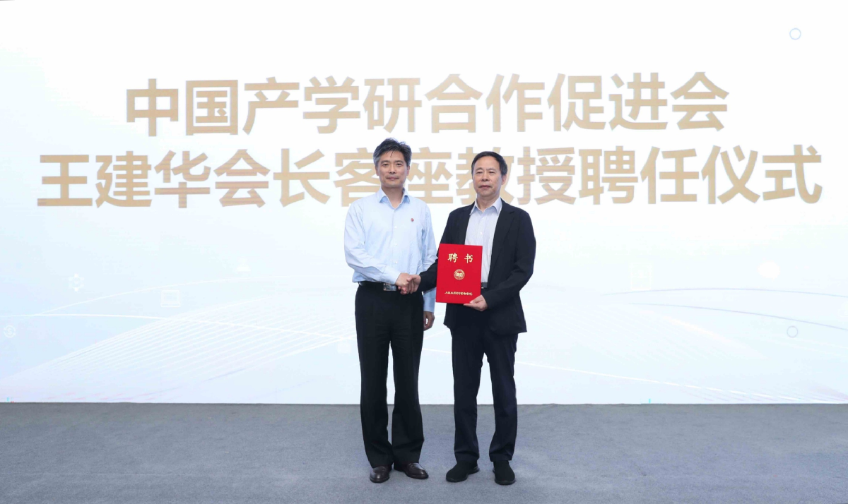 仪式上,中国产学研合作促进会执行副会长、秘书长王建华被聘任为我校客座教授。