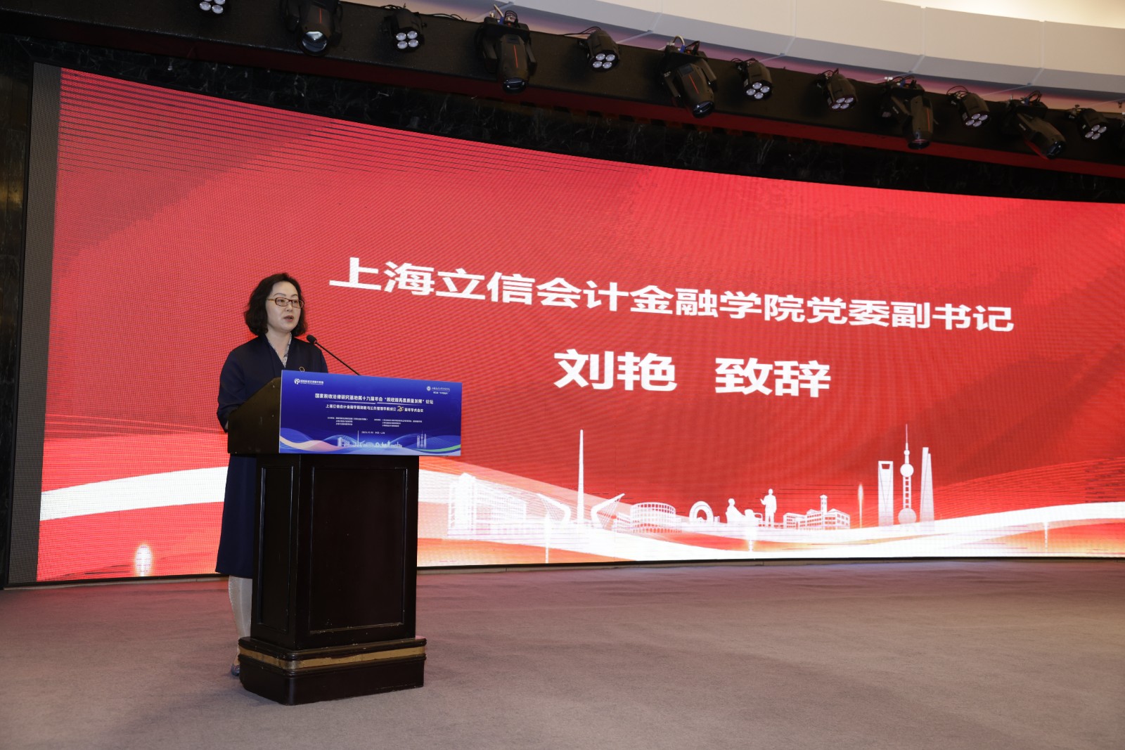 刘艳在致辞中肯定了财税与公共管理学院成立20年来所取得的成绩,她希望学院师生积极面向全球高等教育发展的新趋势与新时代党和国家的新战略,面向上海城市能级跃升的新使命与建校百年的新阶段,面向税收行业转型发展的新动向与区域经济社会发展的新需求,紧盯以大数据、人工智能为代表的新技术、新产业、新业态、新模式,培养更多懂数智、熟法律、精财税、善管理的复合型人才,为上海乃至全国财税事业的高质量发展贡献更多“立信智慧”。