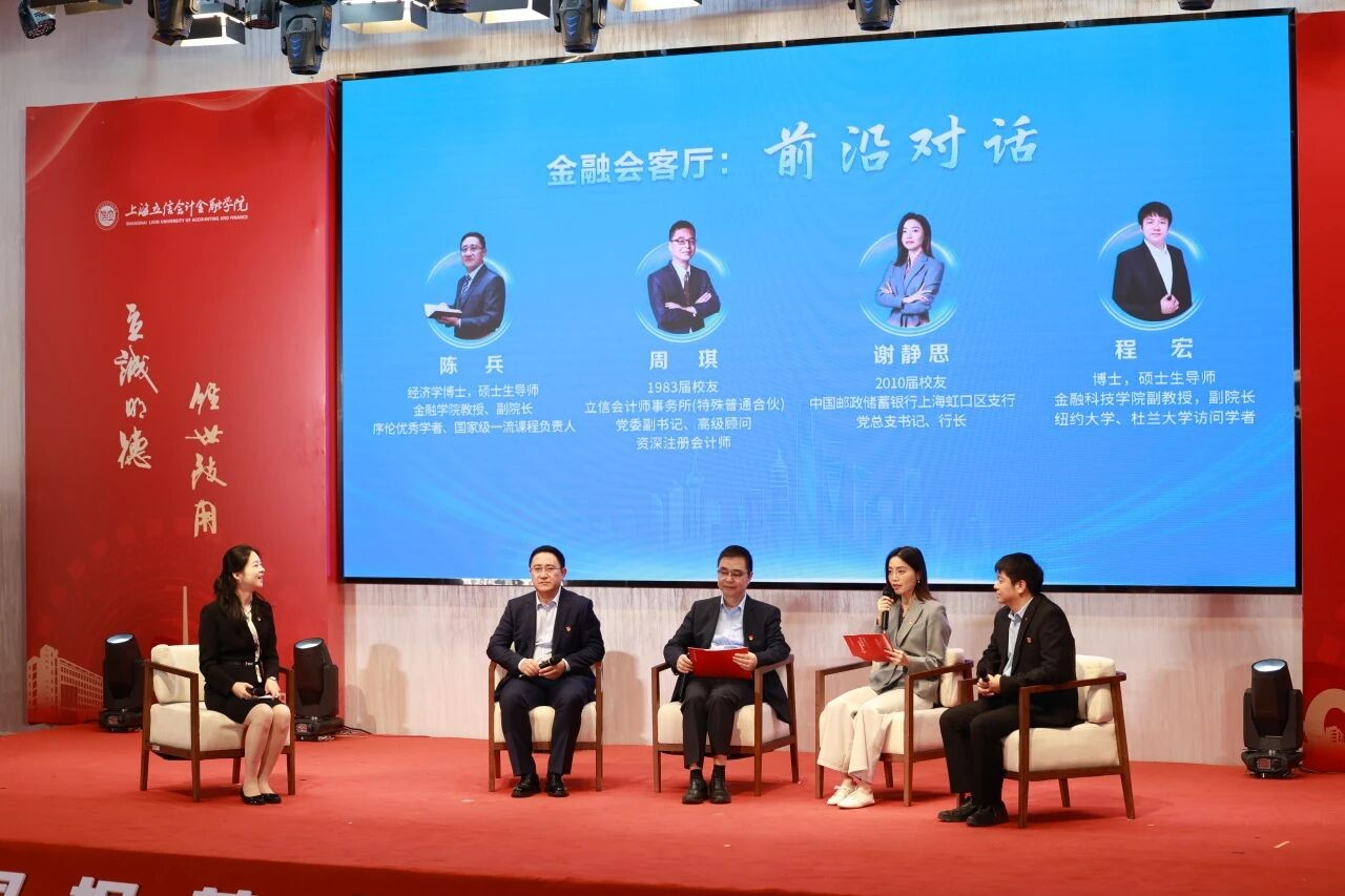在“金融・智汇”篇章,“金融会客厅”邀请立信会计师事务所(特殊普通合伙)周琪校友、中国邮政储蓄银行上海虹口支行谢静思校友、金融学院陈兵教授、金融科技学院程宏副教授畅谈如何以产教融合驱动金融创新,写好金融“五篇大文章”。