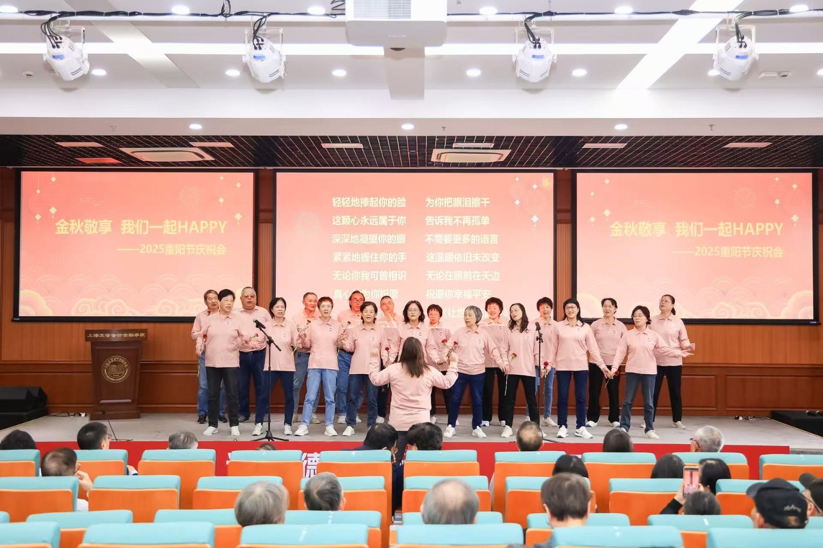 活动特别设置了祝寿环节。退休合唱社团的老同志与国际财经学院年轻学子为70岁寿星献上祝福歌曲,展现了学校尊师重教、敬老爱老的优良传统。