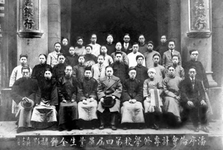 ■ 立信会计专修学校毕业生合影,前排右二为李建模,中为潘序伦