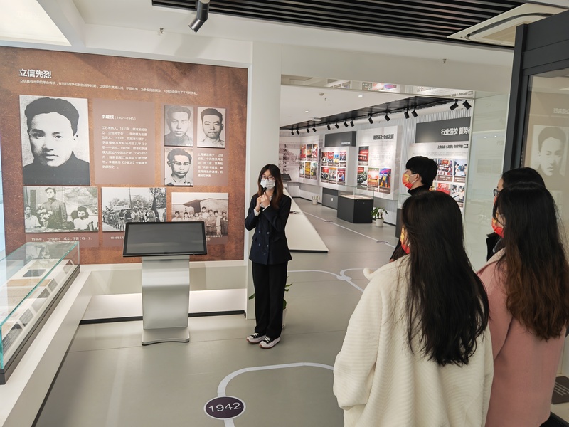 大三学生李子含是新进社浦东社长,她和其他同学相约再次走进位于浦东校区的校史馆。这一次不止像新生入学教育一样观展,而是通过专业讲解,挖掘校史资源,针对性寻找李建模和顾准的热血印记。每周学习,加之自学,在她看来,“我们只有先自己做足做深功课,才能向身边的同龄人讲好红色故事,并且让更多‘听故事’的人变成‘讲故事’的人。”