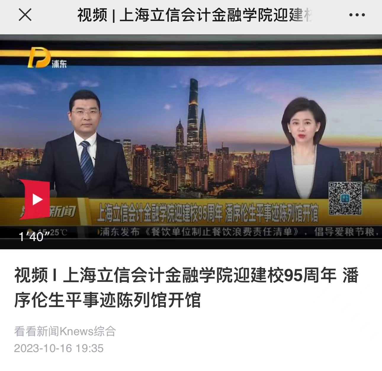 【看看新闻】上海立信会计金融学院迎建校95周年 潘序伦生平事迹陈列馆开馆