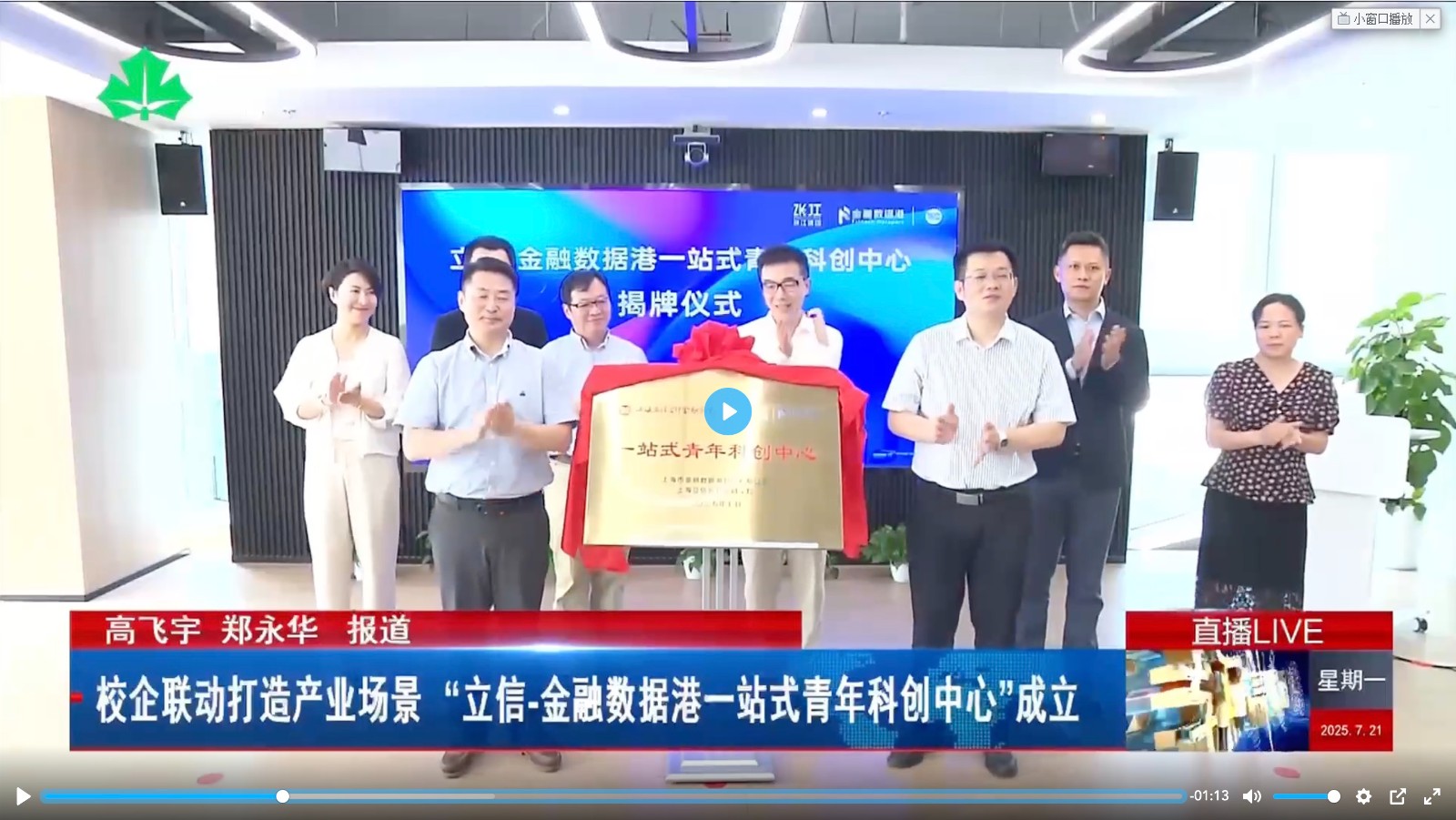 【教视新闻】校企联动打造产业场景 “立信-金融数据港一站式青年科创中心”成立