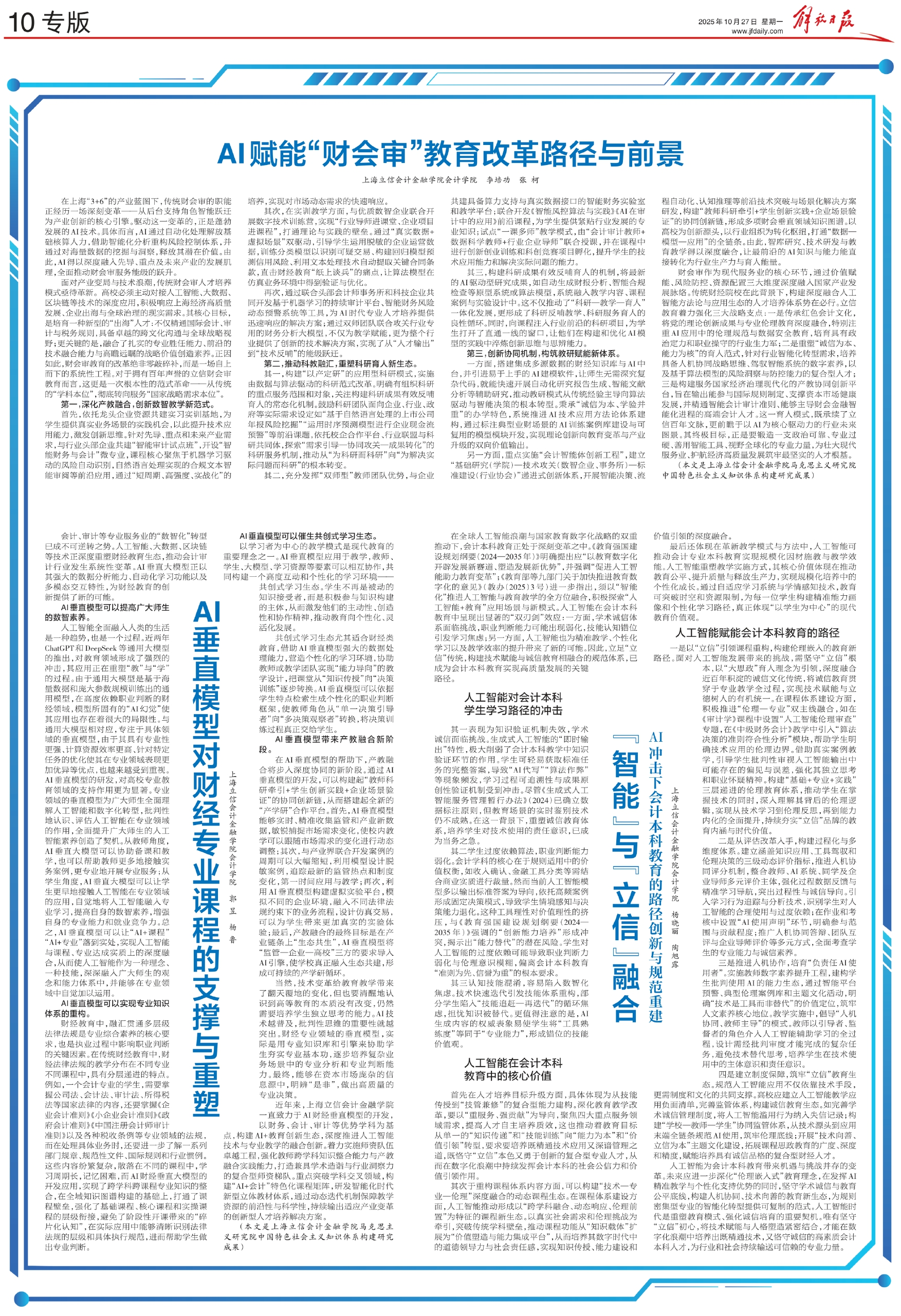 近年来,上海立信会计金融学院一直致力于AI财经垂直模型的开发,以财务、会计、审计等优势学科为基点,构建AI+教育创新生态,深度推进人工智能技术与专业教学的融合创新。着力实施师资队伍卓越工程,强化教师跨学科知识整合能力与产教融合实践能力,打造兼具学术造诣与行业洞察力的复合型师资梯队。重点突破学科交叉领域,构建“AI+会计”特色化课程矩阵,研发智能化时代新型立体教材体系,通过动态迭代机制保障教学资源的前沿性与科学性,持续输出适应产业变革的创新型人才培养解决方案。