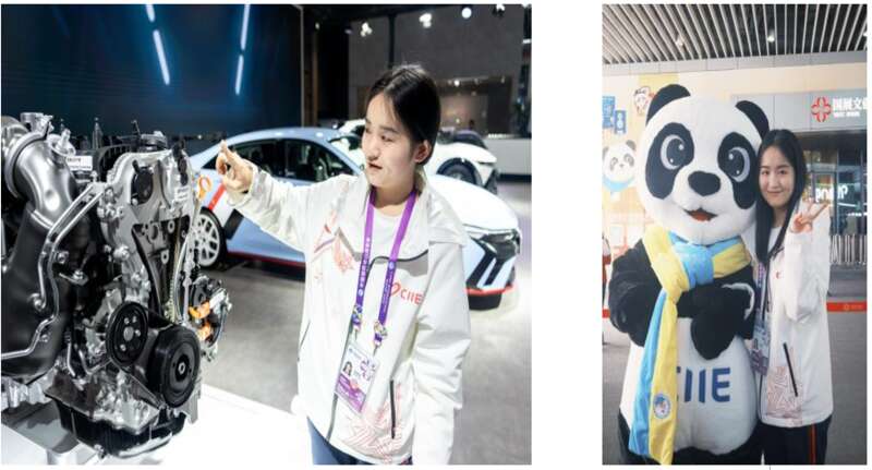 华东理工大学还组建了一支“博士天团”来进博会服务。“就像上了一堂最生动的专业实践课。”华东理工大学卓越工程师学院的2025级直博生姜鸣华,在汽车及智慧出行展区找到了理论与实践碰撞的火花,他对展区内的材料创新格外敏锐。