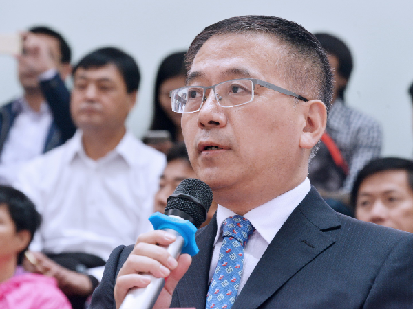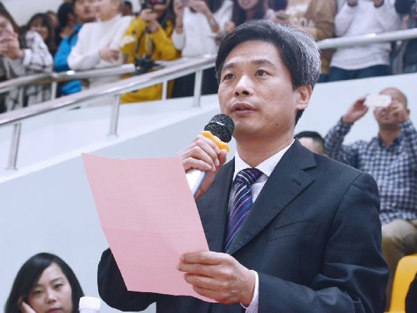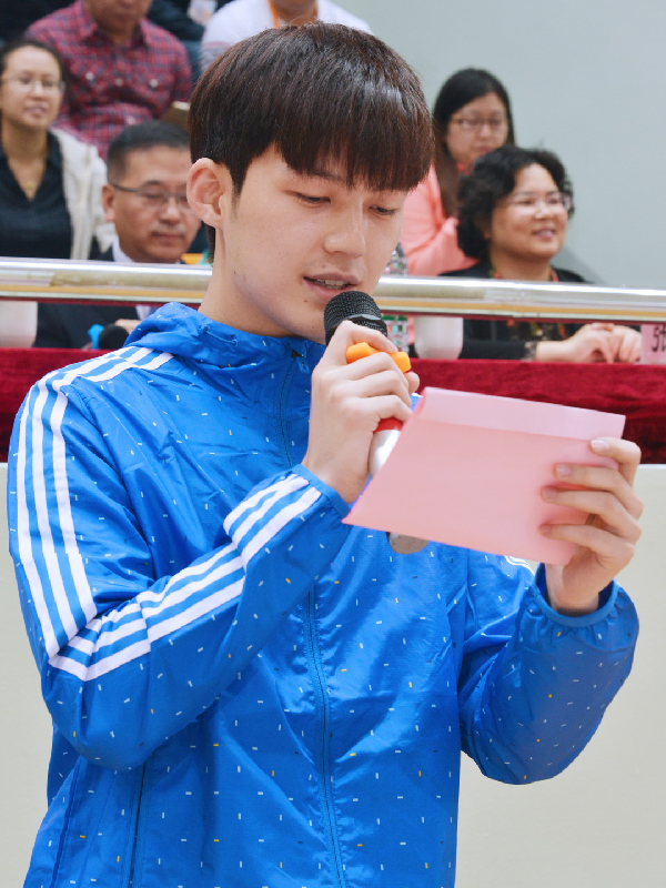 我校知名花剑运动员董力和伦敦奥运会女子重剑团体冠军李娜分别代表运动员、裁判员宣誓。