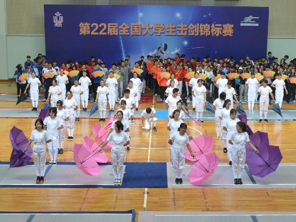 开幕式上学生还以击剑为主题,进行了团体表演。