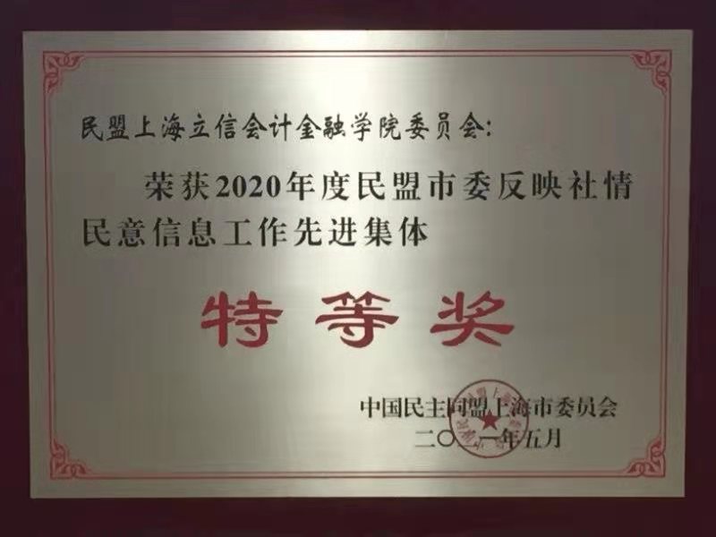 我校民盟委员会获得多项集体和个人奖励,校委员会获民盟上海市委2020年度社情民意信息工作先进集体特等奖,继续在民盟上海各基层单位中位列首位。在民盟市委2020年度社情民意信息工作先进个人方面,盟员肖本华获得特殊贡献个人,薄海豹和王东明获得模范个人,华荣晖获得先进个人。
