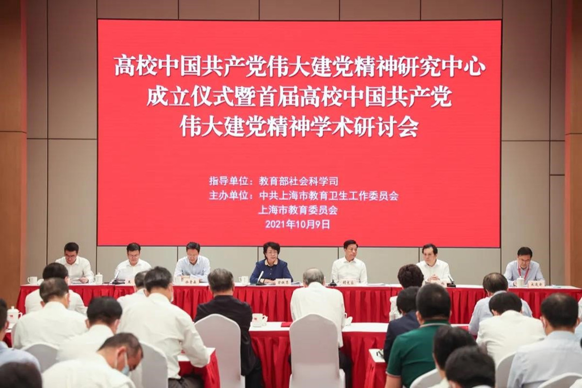 10月9日,在教育部指导和支持下,由市教卫工作党委、市教委主办的高校中国共产党伟大建党精神研究中心(以下简称“研究中心”)成立仪式在中共一大纪念馆举行。教育部党组成员、副部长翁铁慧出席并讲话,上海市委常委、组织部部长胡文容出席并致辞。教育部社会科学司司长徐青森,教育部社会科学司副司长宋凌云,上海市教卫工作党委书记沈炜,上海市教卫工作党委副书记、上海市教委主任王平,上海市教卫工作党委副书记、上海市教委副主任闵辉出席。学校党委书记解超应邀出席会议。