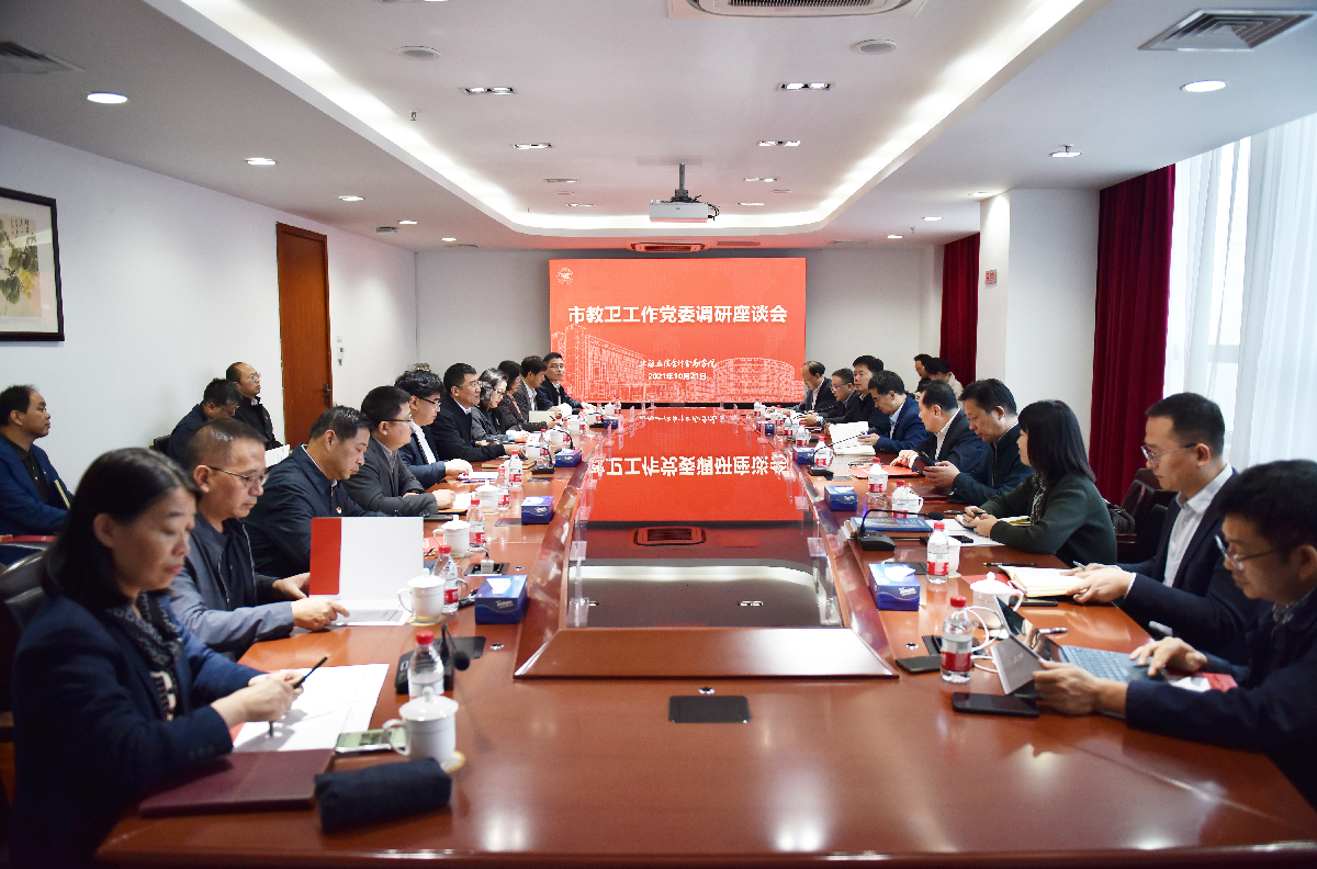 10月21日,上海市教卫工作党委书记沈炜一行到学校就党史学习教育、党代会、学校发展等方面进行调研。校领导解超、杨力、刘艳、温景春、陈洁、赵荣善等参加调研座谈会。市教卫工作党委、市教委相关处室负责人一同调研。