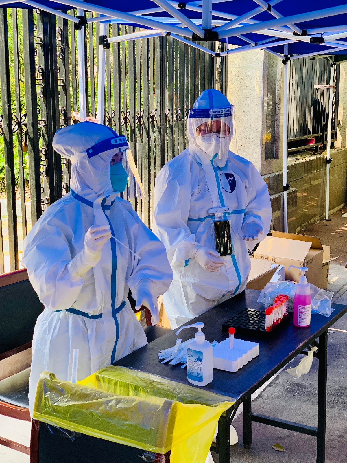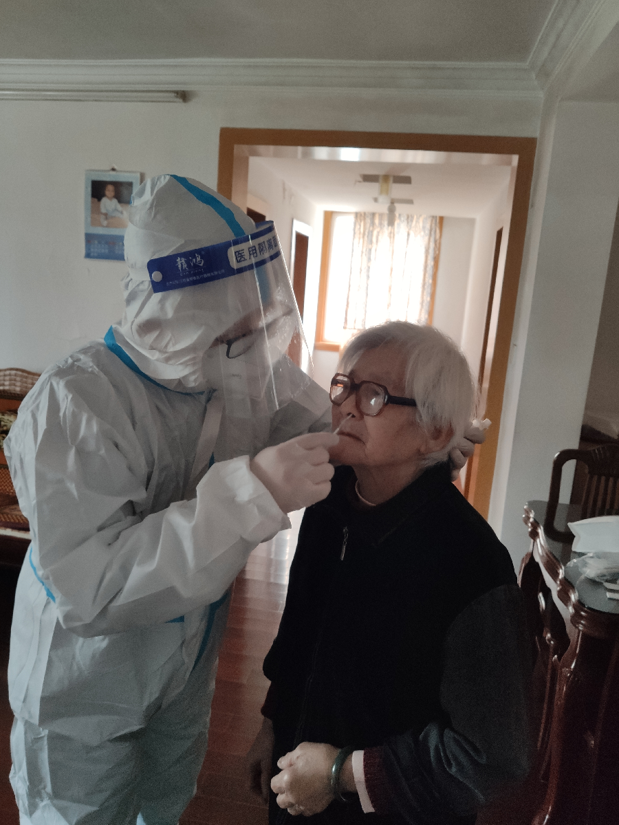 党委宣传部许冰所在小区每天安排六班人员轮岗,他总是选择最晚最忙的一班,平均每天搬运40-50趟物资。他还负责两栋楼的核酸抗原工作,主动陪同医护人员对风险户上门核酸,同时,他还是临时突击队的一员,随时准备出发参与新冠病毒感染者的集中转运工作。