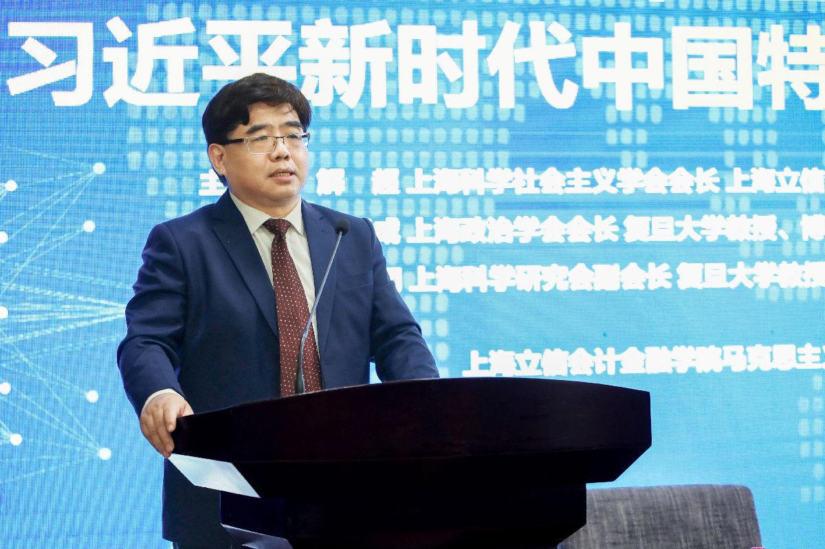 为深入贯彻落实习近平总书记关于“大思政课要善用之”的要求,充分发挥习近平新时代中国特色社会主义思想的铸魂育人功能,9月30日,马克思主义学院在上川路校区举行了“历史地位、理论特质、现实意义——习近平新时代中国特色社会主义思想‘大家谈’”活动。上海政治学会会长、复旦大学教授、博士生导师桑玉成,上海市党史学会会长、上海大学教授、博士生导师忻平,上海科学研究会副会长、复旦大学教授、博士生导师张晖明,上海社会科学院国际问题研究所所长、博士生导师王健联手同台,给师生们上了一堂内容丰富、思想深刻的思政大课。校党委书记、上海科学社会主义学会会长、高校伟大建党精神研究中心立信分中心主任、教授、博士生导师解超主持了座谈。