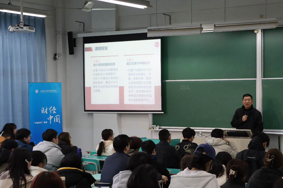 《财经中国》作为我校开设的“中国系列”课程,是学校整体实施课程思政教学改革的重要组成部分,是上海市级重点课程建设项目。课程在教学内容方面设置了十个不同专题,涵盖中国对外贸易开放、证券市场、时事金融等方面,由校内外专家共同组成教学团队授课,目的是增强同学们对我国国情的了解,带领同学们全面客观认识当代中国、看待外部世界,坚定理想信念,深刻领悟时代责任和历史使命,积极投身中国特色社会主义建设,大力弘扬为实现中华民族伟大复兴目标而努力奋斗的时代精神。