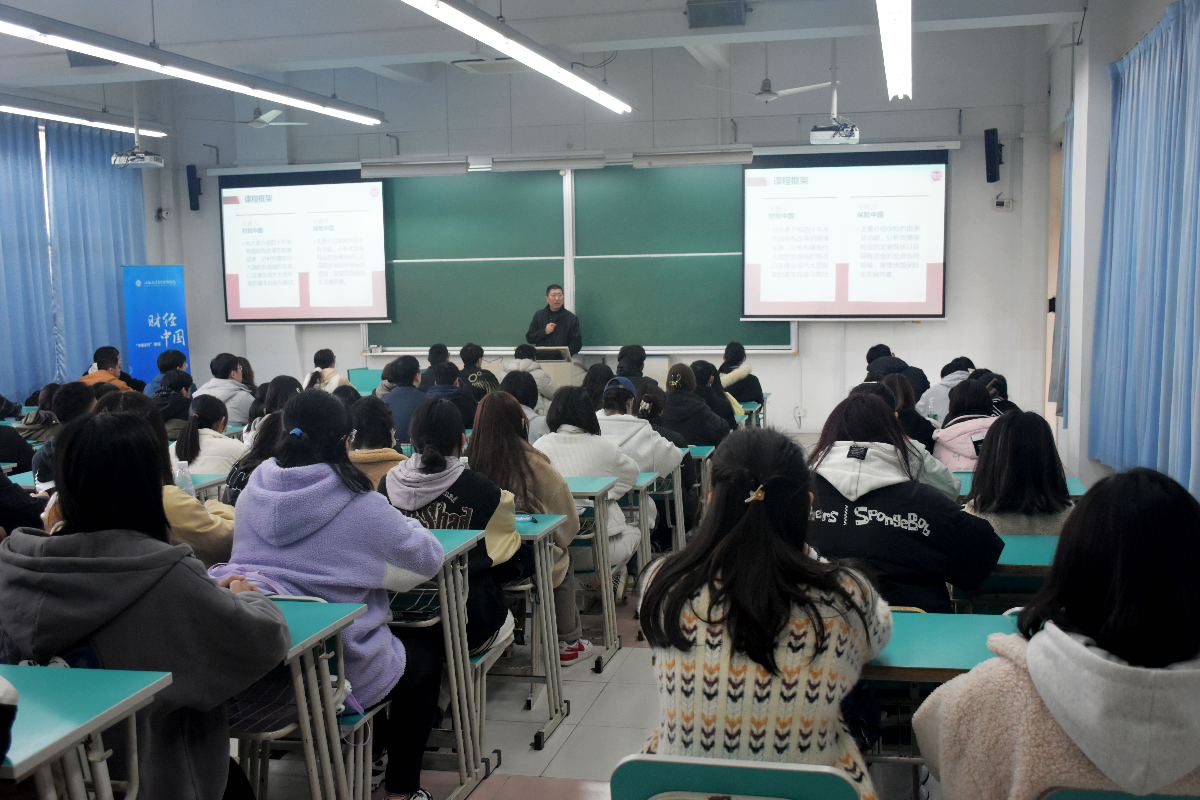 近日,我校“中国系列”课程《财经中国》在文翔路校区开讲。校党委副书记、院长杨力教授为2022级学生做了“宏观视角下的中国经济:伟大成就与新发展格局”的专题授课。