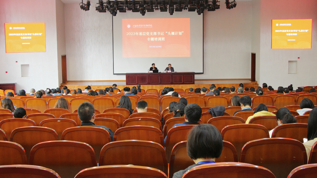 3月29日,学校在上川路校区举行学习贯彻《中国共产党普通高等学校基层组织工作条例》主题报告会,本次报告会是“当好领头雁,展现新作为”2023年基层党支部书记“头雁计划”专题培训班的系列活动之一。党委副书记、副院长王军华作主题报告。全体教师党支部书记、学生党支部书记、专兼职组织员100余人参加了学习。