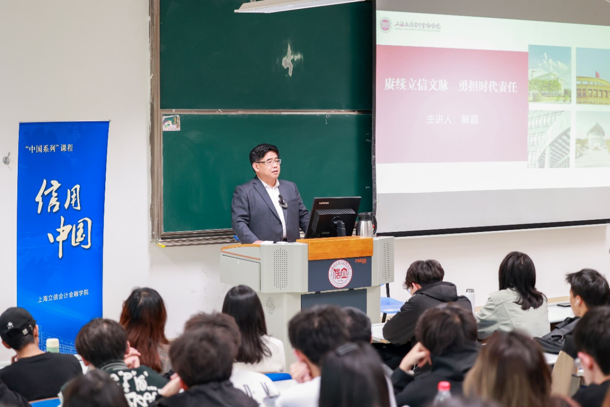 4月25日,校党委书记解超走进“中国系列”课程《信用中国》课堂,为同学们带来一场精彩的专题授课,在场近120位大学生共同聆听。
