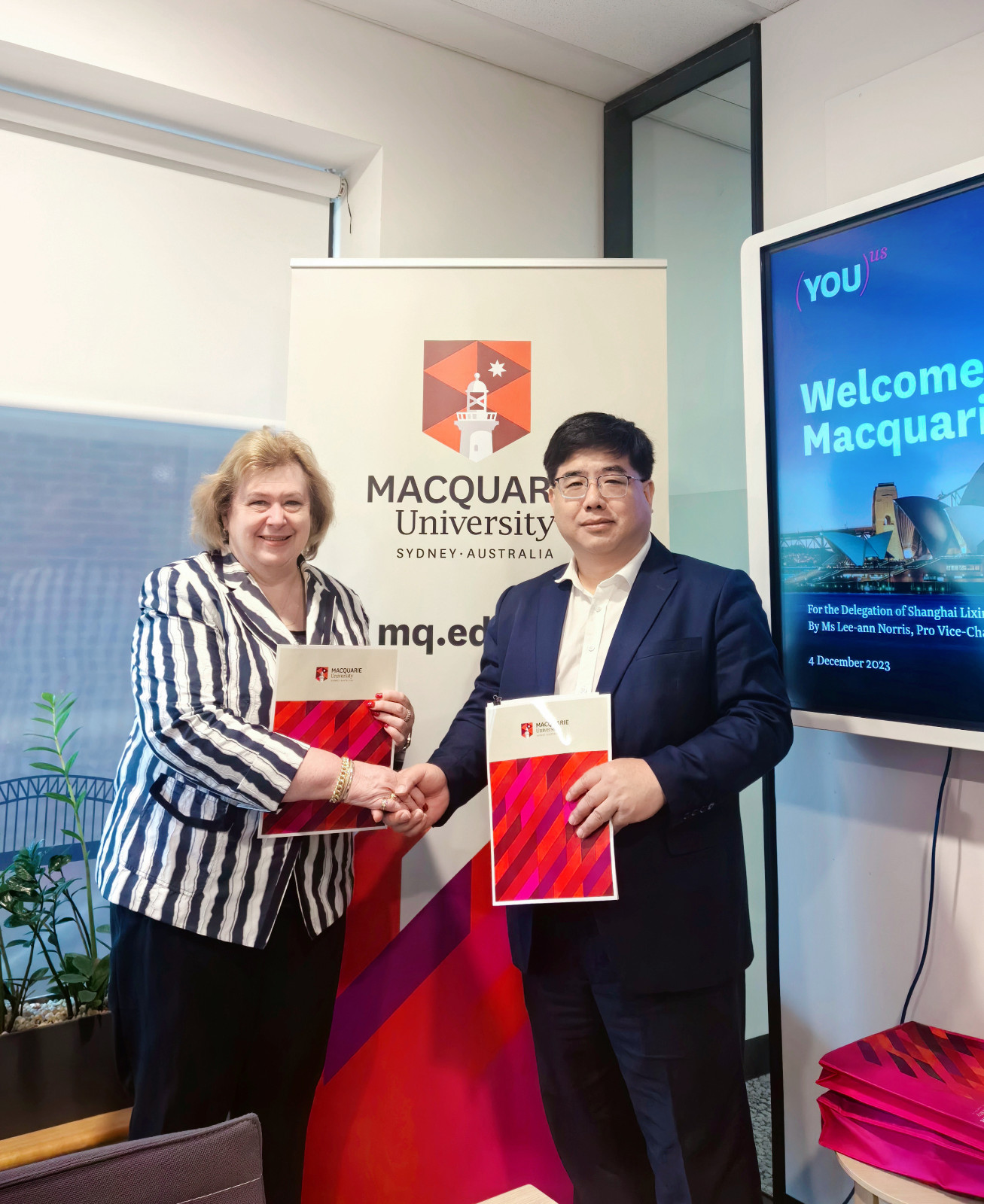 在访问麦考瑞大学期间,副校长Lee-ann Norris、招生办公室大中华区主任Stella Wang、会计学院院长Rahat Munir等接待了代表团一行。Lee-ann Norris介绍了麦考瑞大学的办学特色、发展规划和该校会计专业的建设情况,麦考瑞大学会计专业位列全澳第一,拥有大洋洲唯一获得CPA Australia、IMA、ACCA等六项国际认证的会计课程。解超表示,两校学科结构相似,都有着“学验并重”的办学理念,未来有更多的合作空间。双方还就会计领域的合作交换了意见,希望能在更多学科领域开展多层次多形式的交流合作,促进两校优势互补。随后两校续签了合作协议,并就“2+2”联合培养项目、交换生项目、教师互动交流、教学资源共享等议题展开讨论。