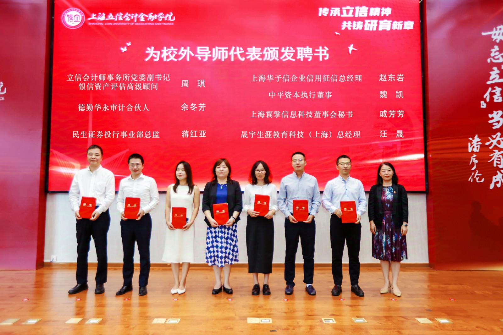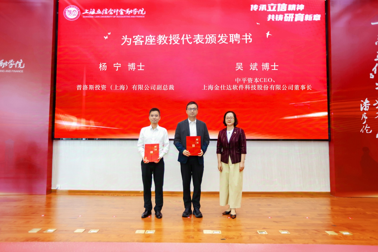 中平资本CEO、上海金仕达软件科技股份有限公司董事长吴斌博士,立信会计师事务所党委副书记、银信资产评估有限公司高级顾问周琪校友,上海市徐汇区统计局副局长叶青,会计学院万华林教授分别作为客座教授代表、校外导师代表、实践基地代表、校内导师代表发言。