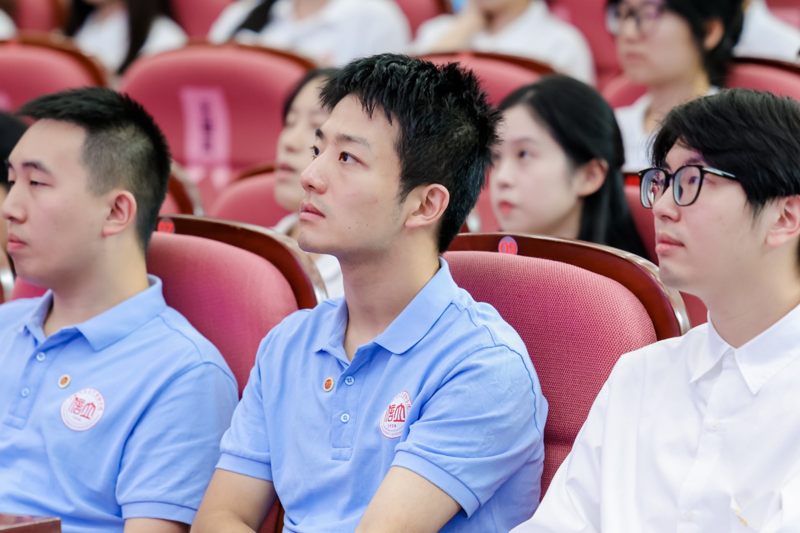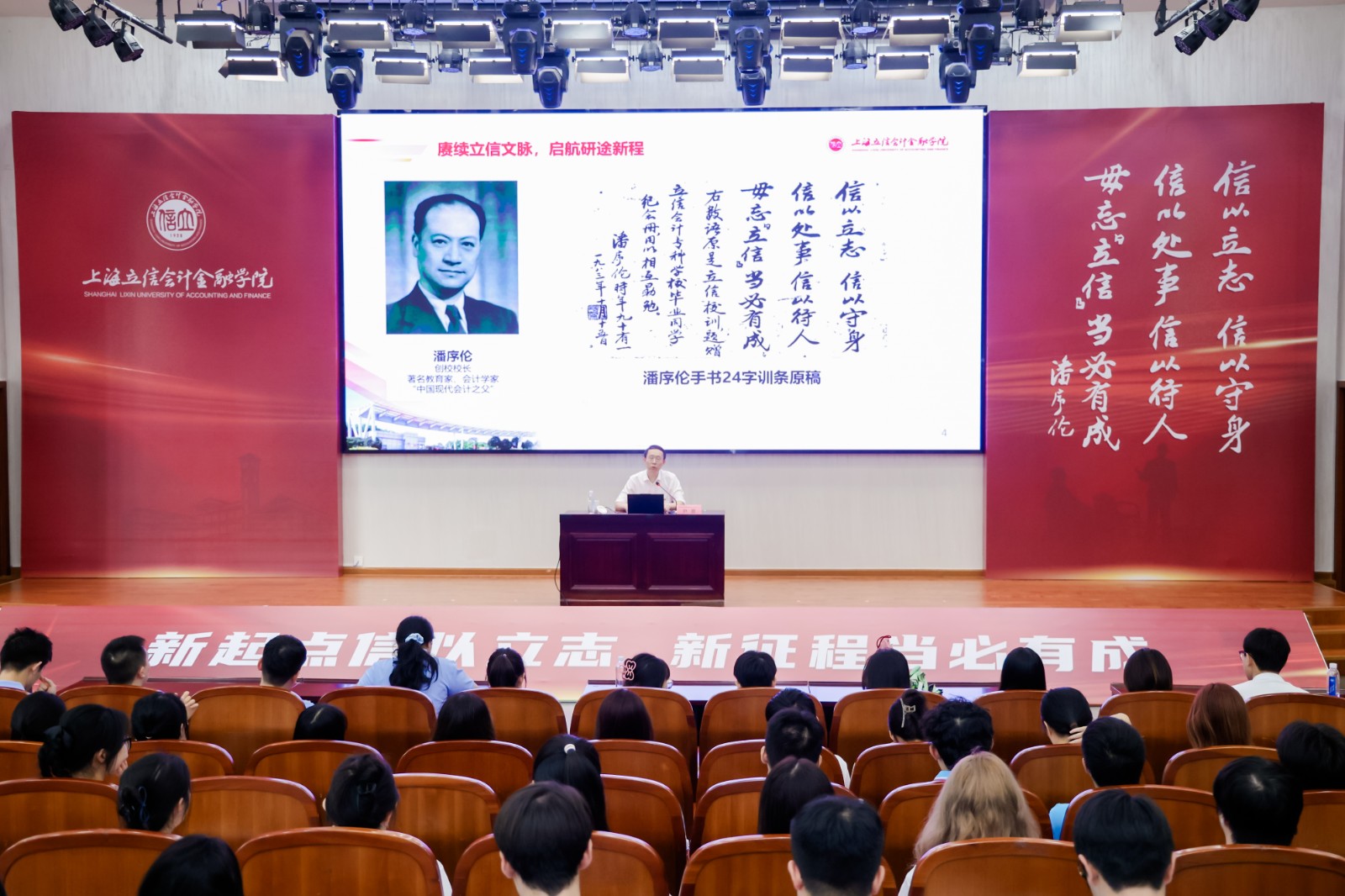 2019届审计专业硕士校友姚鹏飞分享了自己在立信求学成长的经历。2025级金融专业研究生王琪代表新生发言,表达了对研究生生活的期待与立志传承立信精神的决心。