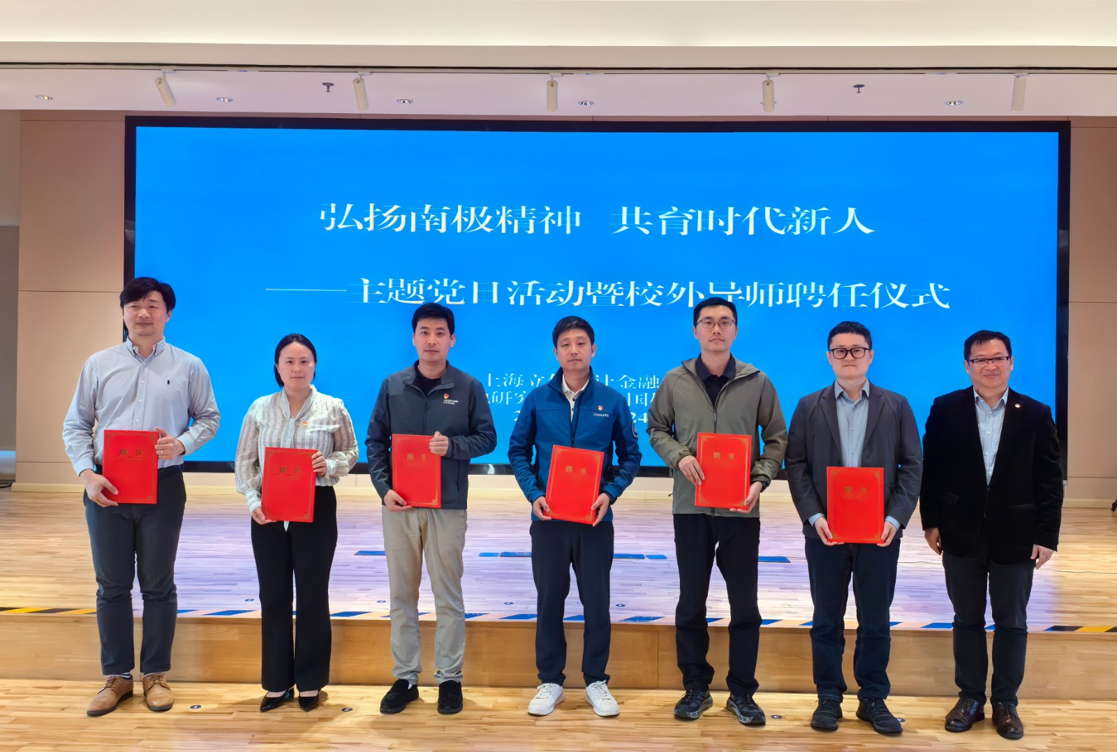 王军华代表学校向六位来自极地科研一线的青年骨干颁发“党校特聘导师”聘书。