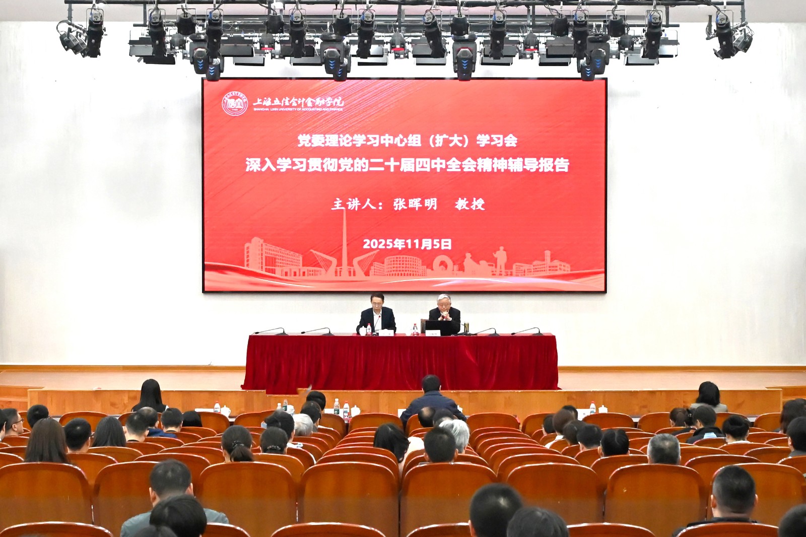 11月5日,校党委理论学习中心组(扩大)专题学习党的二十届四中全会精神。复旦大学长三角研究院副院长、企业研究所所长张晖明教授应邀作辅导报告。校党委副书记尹晨主持会议,学校党委理论学习中心组成员、全体中层干部(含挂职)参加学习。