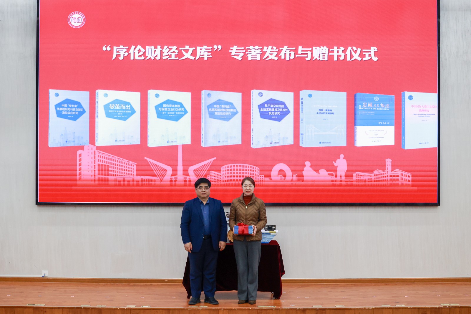 在仪式环节,举行了“序伦财经文库”学术专著发布仪式。解超为“序伦财经文库”学术专著揭幕,图书馆馆长王婧代表学校图书馆接受赠书。会上,学校还启动了第一批6个“数智赋能科研范式创新”示范团队。