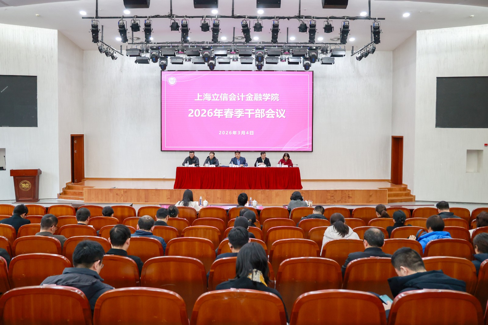 会议传达了2026年春季上海高校党政负责干部会议精神,回顾了学校2025年党政主要工作,并部署了2026年重点工作。校党委书记解超指出,“十五五”时期是学校深化综合改革、奋力建设一流应用型财经大学的关键时期,面向建校百年,全体干部要深刻把握“十五五”时期高等教育肩负的时代使命,深刻把握上海加快建设“五个中心”的发展大局,深刻把握学校综合改革向纵深推进的战略重点。会议强调,学校要以习近平新时代中国特色社会主义思想为指导,以立德树人为根本,以综合改革为牵引,以高质量发展为主线,进一步重服务、强贡献,确保“十五五”高质量开局。会议要求,中层干部作为学校发展的“中坚力量”,作为落实决策的“关键少数”,要树立和践行正确政绩观,以“时不我待、只争朝夕”的紧迫感,以“逢山开路、遇水架桥”的奋斗姿态,凝心聚力、真抓实干。
