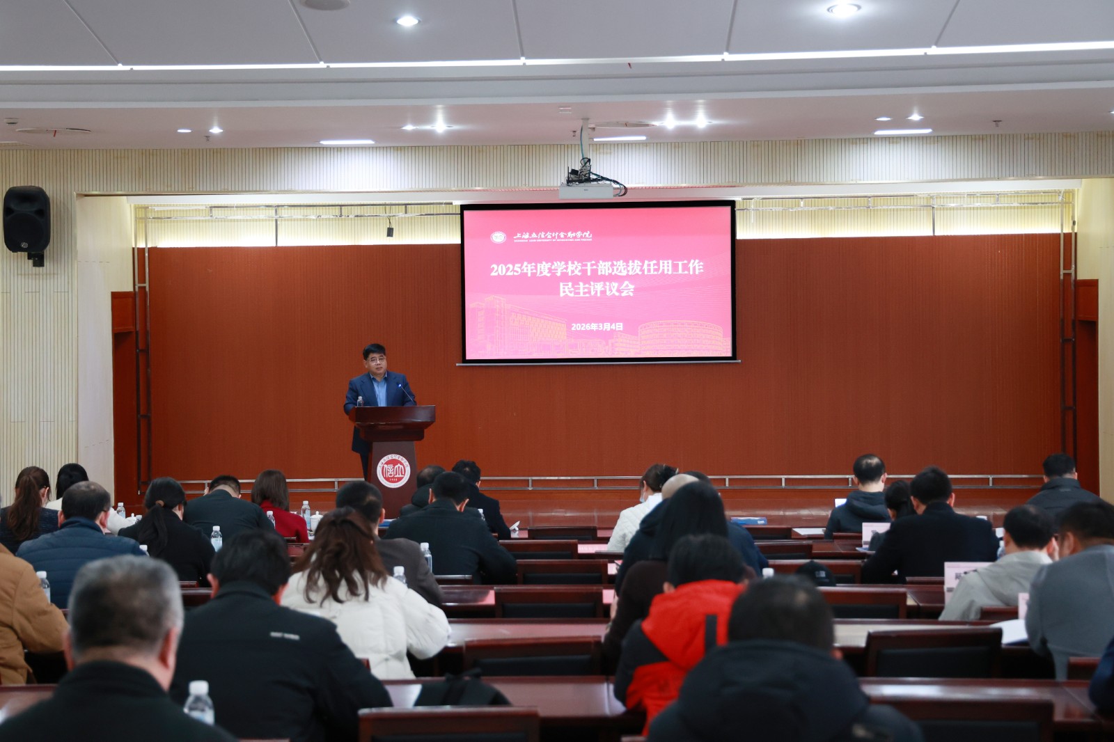 与会人员对学校党委2025年度干部选拔任用工作情况和新提拔任用干部进行了民主评议。