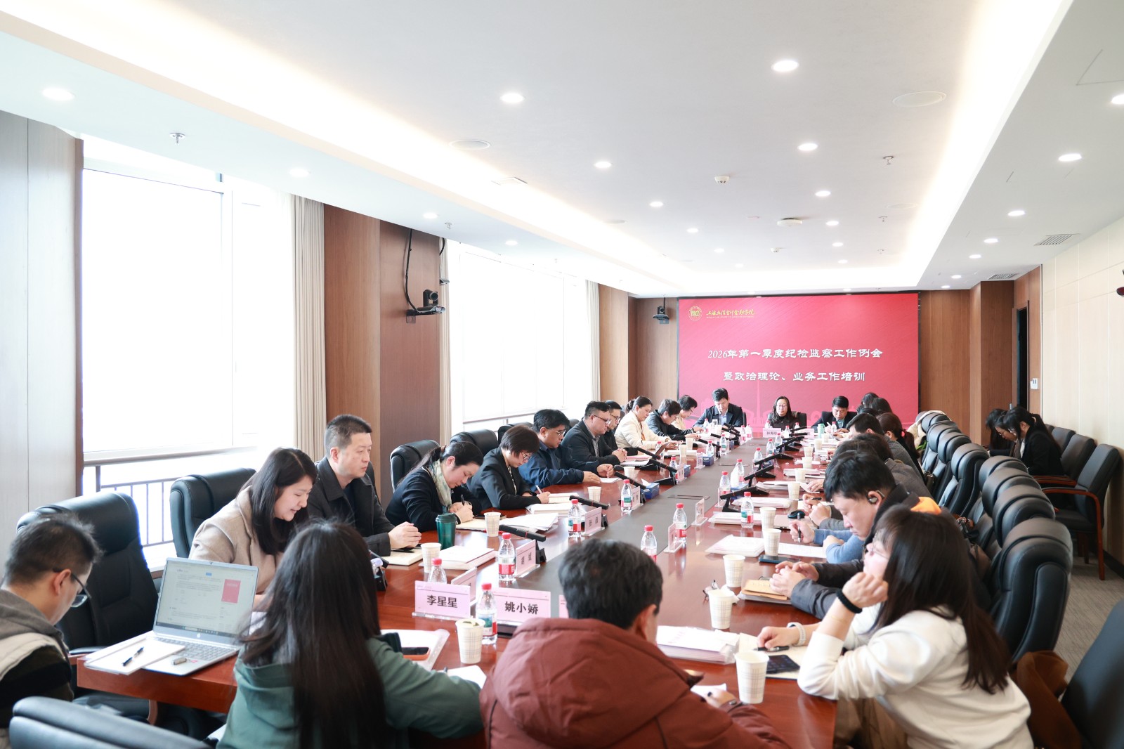 3月23日,学校召开2026年第一季度纪检监察工作会议暨政治理论、业务工作培训。校党委书记解超出席会议并讲话。校纪委委员、各二级党组织纪检委员、全体专职纪检监察干部参加会议。