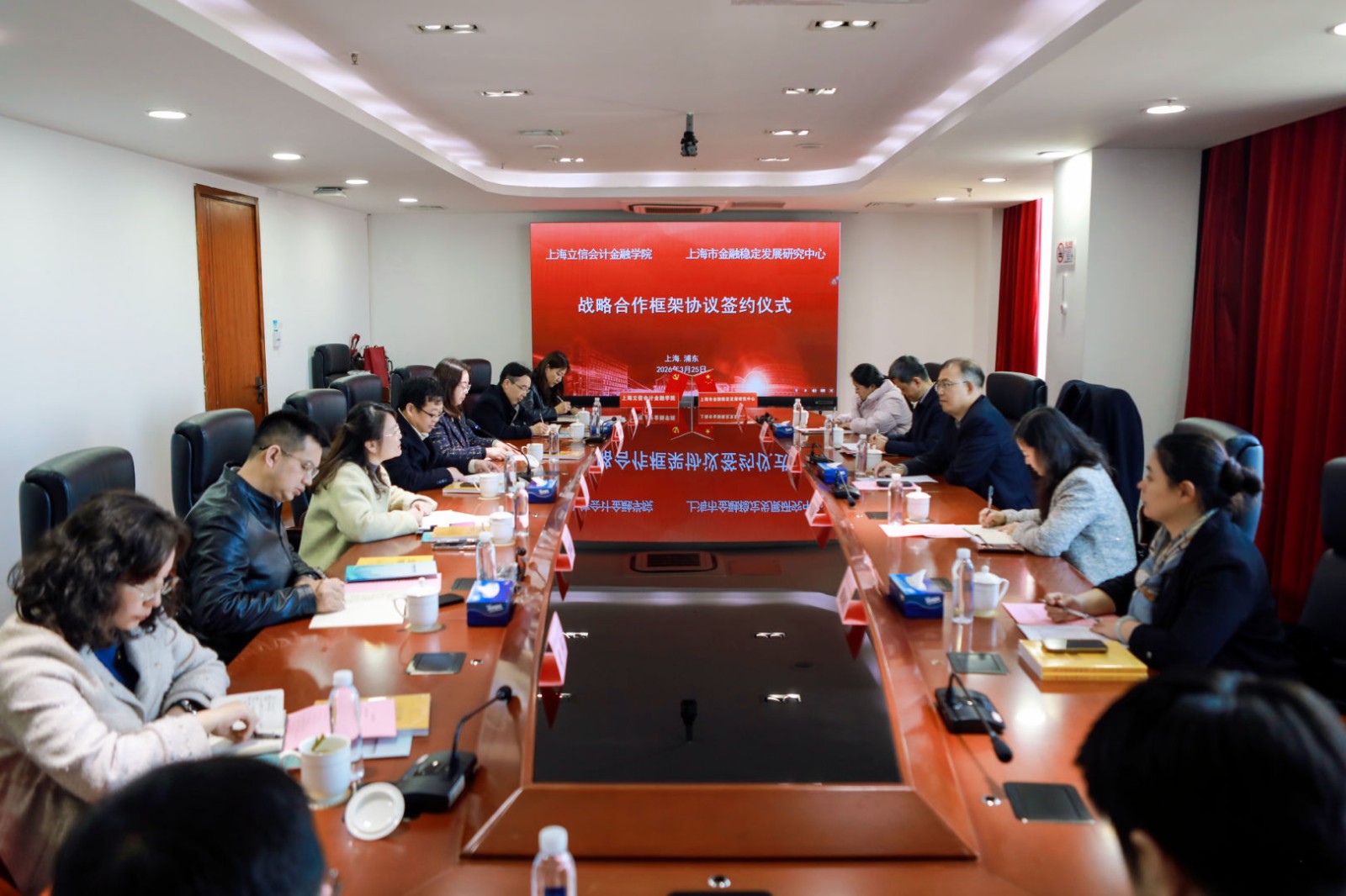 3月25日,学校与上海市金融稳定发展研究中心在上川路校区举行战略合作框架协议签约仪式。校党委副书记、院长杨力会前接待了上海市金融稳定发展研究中心主任许耀武、副主任李茂菊等一行。校党委副书记、副院长王军华主持仪式并代表学校签约。
