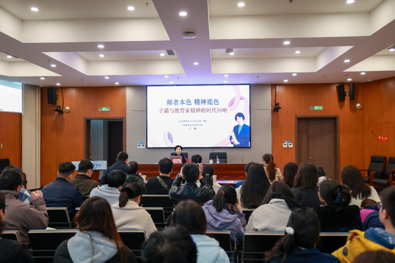计琳以“师者本色 精神底色——于漪与教育家精神的时代回响”为题作专题报告。她从为事、为师、为学、为人四个维度,深情讲述了于漪老师从初登讲台到成为人民教育家的光辉历程。通过鲜活的案例,计琳生动诠释了于漪老师“教文育人”的思想内核与“生命与使命同行”的崇高境界。在互动环节,计琳结合自身研究,就AI时代教师的不可替代性及辅导员如何践行教育家精神等问题,与现场师生进行了深入交流,为专业教师与辅导员解答了育人实践中的困惑。
