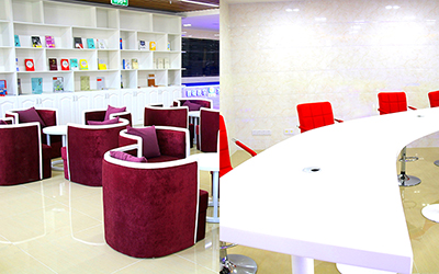 松江校区新建的教师教学与发展中心现有场地1100平方米,分为教师休闲区、资料查询区、教学研讨室和多功能报告厅四大区域。教师休闲区配备了2台咖啡茶饮多功能机、多套桌椅以及近百种书报杂志,旨在为教师提供一个休闲小憩的轻松环境。资料查询区配备了四台电脑,匹配中心上线的“超星学习通”和“蔚秀报告厅”等软件平台,可为广大教师提供13个学科门类、551个专业的在线课程,各大高校海量的视频、PPT等教学资源,以及数千种专业电子期刊。教学研讨室9间,配有触摸一体机、投影仪及显示器等辅助教学设备,具有录播点播和无线投屏等功能,可供教师自主进行课件制作及开展团队讨论。多功能报告厅可容纳60-70人,采取智能化多媒体解决方案,配备双投影仪和四种语言同声传译室,可开展多语言教学和会议,并可根据需要进行灯光调节;每套桌椅均配有话筒,可进行话筒跟踪直播及全自动录播。