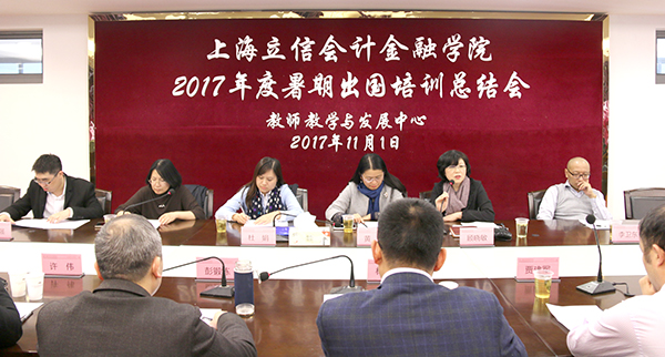 近日,教师教学与发展中心在浦东校区召开2017年度暑期出国培训总结会,并特邀上海市外专局副局长黄红、副处长杜娟莅临我校对教师短期出国培训等相关工作进行指导。副校长顾晓敏出席了本次会议并致欢迎辞。会议由教师教学与发展中心主任赵迎春主持,国际交流处副处长李卫东、相关二级学院分管外事工作副院长、全体2017年出国培训参训教师及教师教学与发展中心工作人员参加了会议。