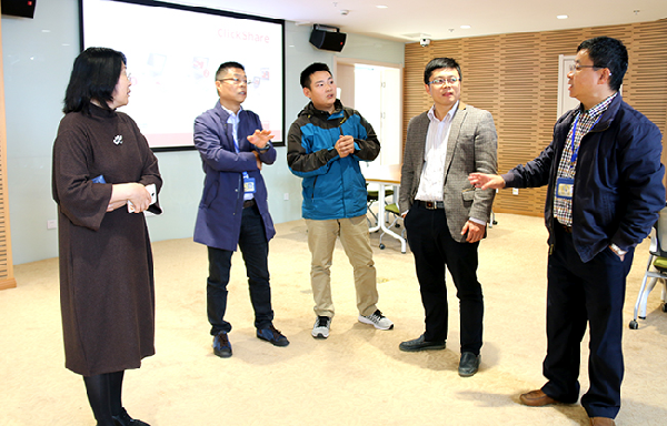 近日,副校长万峰在相关职能部门负责人的陪同下走访了教师教学与发展中心,中心主任赵迎春对多功能报告厅及各类型研讨室的利用情况和相关设备的运行情况做了详细的介绍。