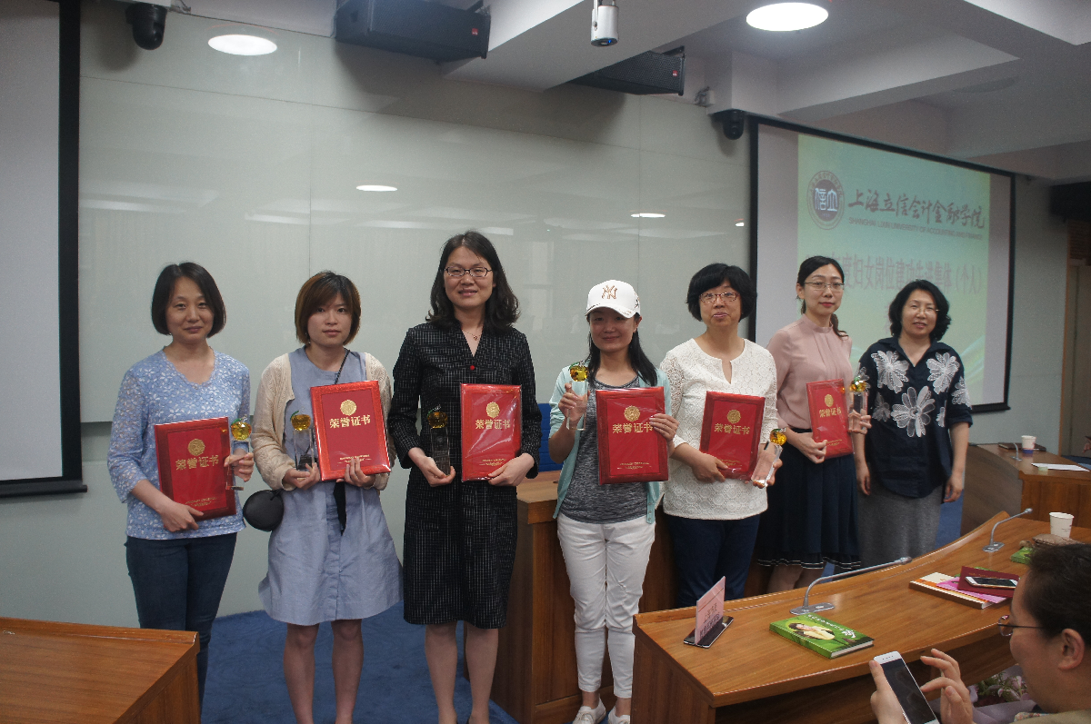 报告会后,举办了表彰仪式,对2017年度上海市巾帼文明岗法学院、2017年度上海市教育系统巾帼建功标兵、2017年度校巾帼文明岗和校巾帼建功标兵、以及2017年度上海市教育系统比翼双飞模范佳侣、2017年度校比翼双飞模范佳侣等单位和个人颁发了奖牌和奖杯。