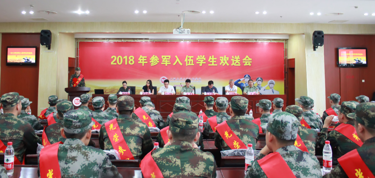 9月17日,我校2018年参军入伍学生欢送会在浦东校区实验中心201报告厅举行,浦东新区区委常委、区人武部政委、区双拥工作领导小组副组长金辉大校,校党委副书记、副校长王军华,各职能部门负责人、二级学院副书记、辅导员、2018年全体入伍学生、学生家长参加了大会。会议由党委学生工作部、武装部副部长李政主持。