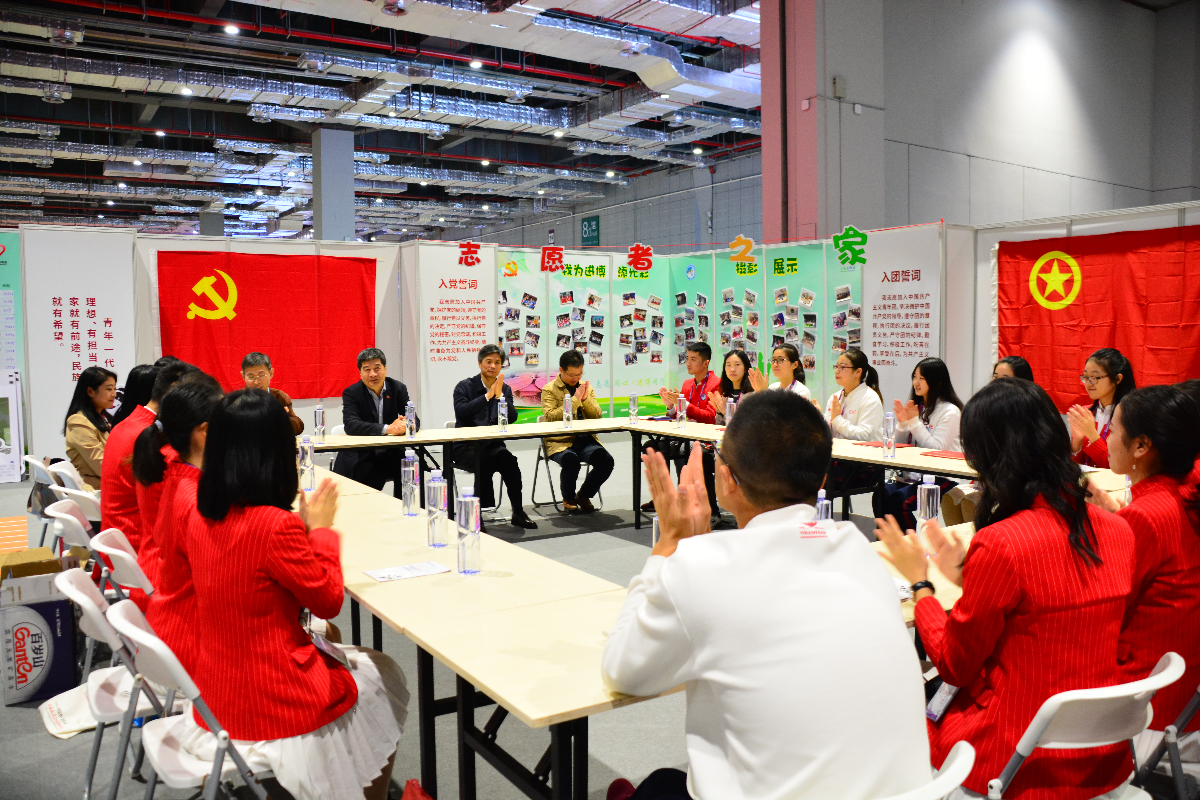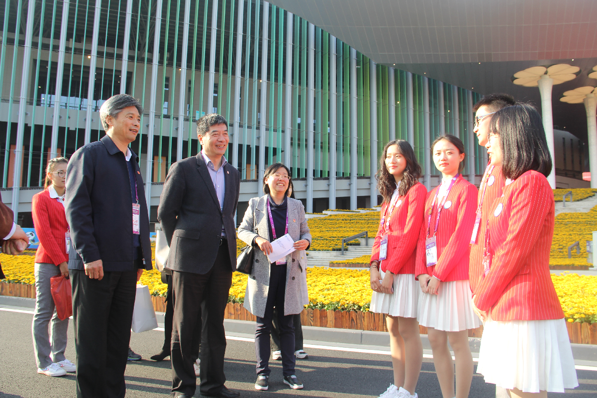11月9日下午,校党委书记李世平,校党委副书记、校长唐海燕,党委副书记、副校长王军华,副校长朱亚兵在团市委副书记刘伟、戴冰,学校部部长徐速陪同下,赴国家会展中心慰问首届中国国际进口博览会我校志愿者。