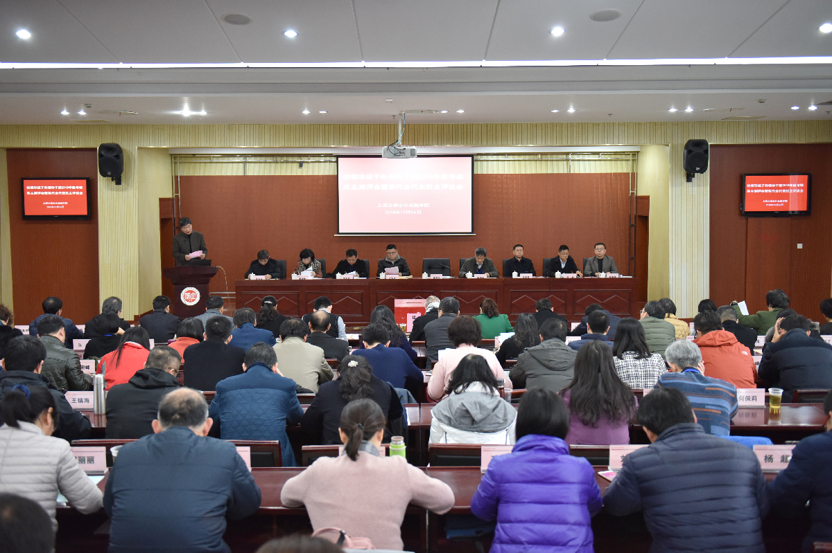 12月26日下午,学校在浦东校区召开校领导班子和领导干部2018年度考核民主测评会暨教代会代表民主评议会,校党政领导班子成员、各单位(部门)党政负责人、教职工代表、民主党派代表及离退休老同志代表及教代会代表近120人参加会议。会议由校党委书记李世平主持。