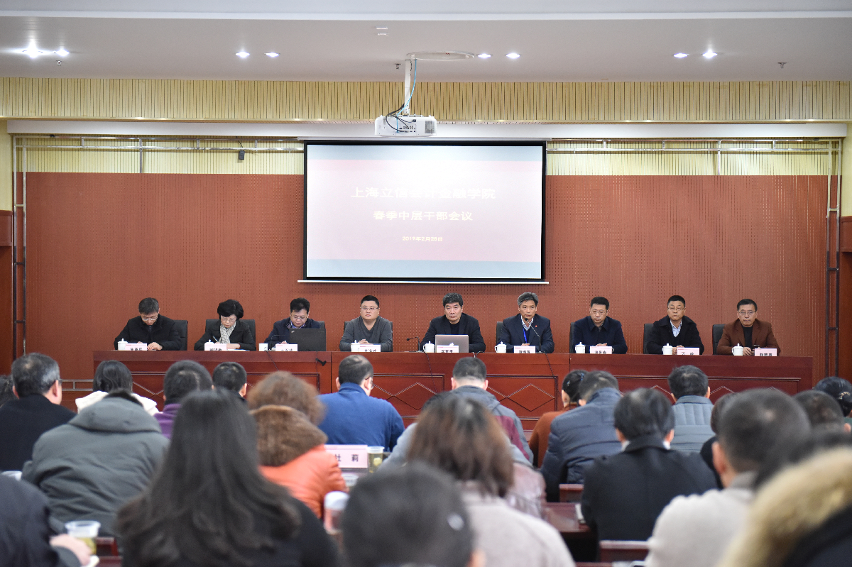 2月28日,学校2019年春季中层干部会议在浦东校区实验中心201会议室召开。会议传达了春季上海高校党政负责干部会议精神,部署了学校2019年的重点工作。校领导李世平、唐海燕、温景春、王军华、万峰、顾晓敏、赵荣善、朱亚兵出席会议。会议由党委副书记、校长唐海燕主持。