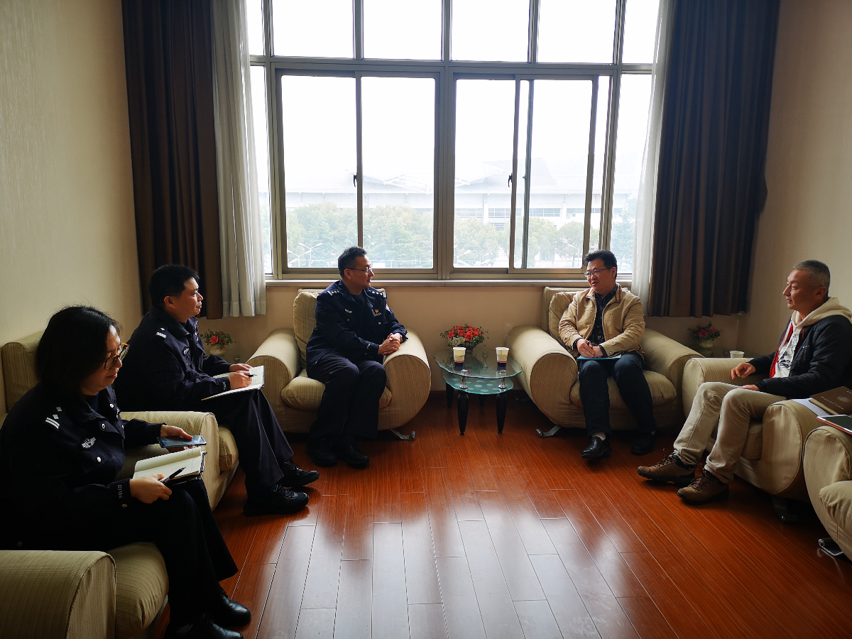 3月21日上午,松江大学城派出所所长庄卫东一行来我校松江校区调研校园安全工作。校党委副书记、副校长王军华接待了客人。