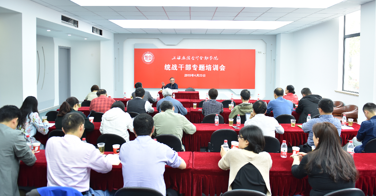 4月23日,我校在浦东校区举办统战干部培训会,邀请了盟史专家、原民盟上海市委宣传部部长王海波作专题报告,我校各二级党组织负责人和统战委员参加培训会,会议由党委统战部部长郁顺华主持。