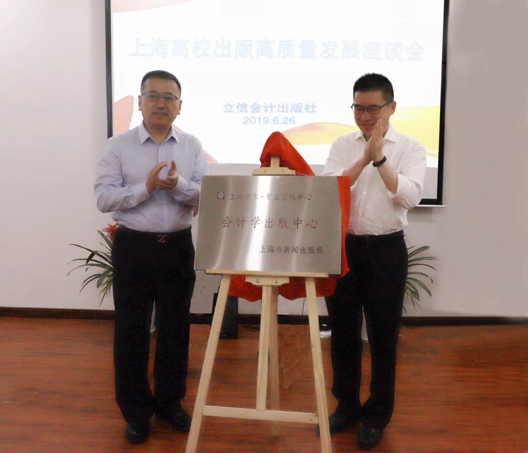 在与会嘉宾热烈的掌声中,“中国画报协会财经金融工作委员会”、上海学术·专业出版中心“会计学出版中心”、“立信书局”揭牌仪式举行。大家对三家机构的设立表示热烈的祝贺,预祝画报协会财经金融委深耕细作,为广大读者推出更多通俗易懂的出版物;“会计学出版中心”继续弘扬学术出版,多出高质量的学术精品;立信书局展示好立信会计文化品牌形象,并为推广“全民阅读”活动发挥高校书店更大的作用。