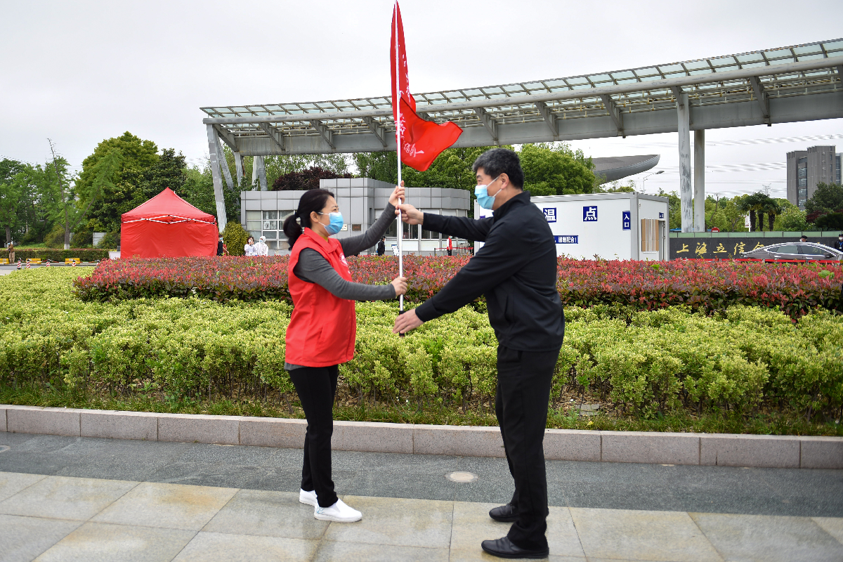 5月8日上午,在学校开学疫情防控模拟演练启动仪式上,校党委书记李世平向机关党委书记王婧授予上海立信会计金融学院疫情防控应急管理队旗帜,标志着应急管理队伍将全面投入校园疫情防控工作一线。第一批、第二批应急管理队30多名队员参加授旗仪式,其中17名队员参加了模拟演练,值守在班车、学校入口、食堂、监考教室、学生宿舍测量体温、维持秩序的一线岗位上。