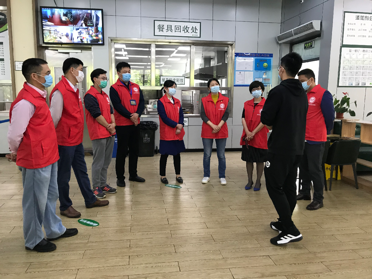 4月29日,应急管理队队员参加学校疫情防控培训。经过岗前培训,4月30日起,第一批28名队员身穿“红马甲”投入到班车测量体温、维持秩序,学校入口维持秩序,食堂测量体温、维持秩序以及办公区域餐饮垃圾分类的一线岗位上。试运行期间,应急管理队员按时到岗值守、主动沟通交流、及时反馈问题,在服务时间、岗位职责、操作流程上不断完善细化,确保各项工作有序平稳进行。